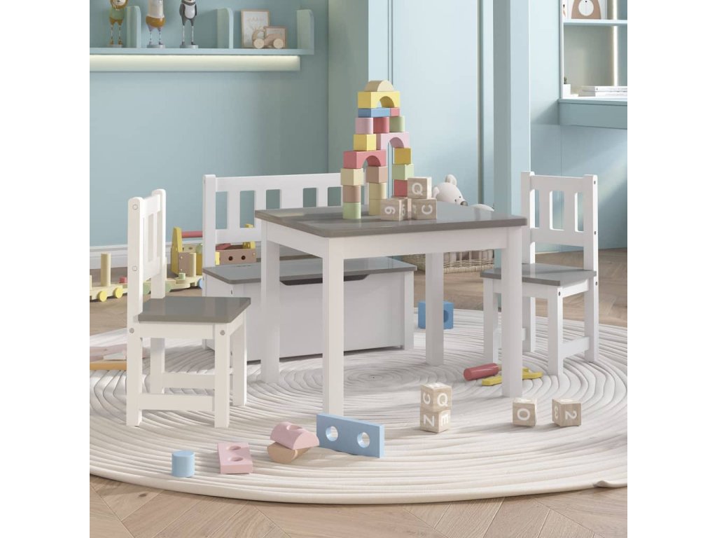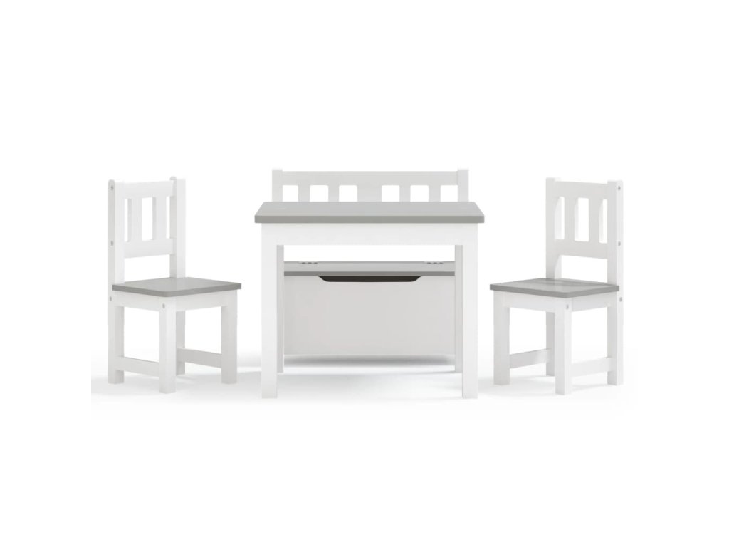 4dílná sada dětského stolu a židlí bílá a šedá MDF
