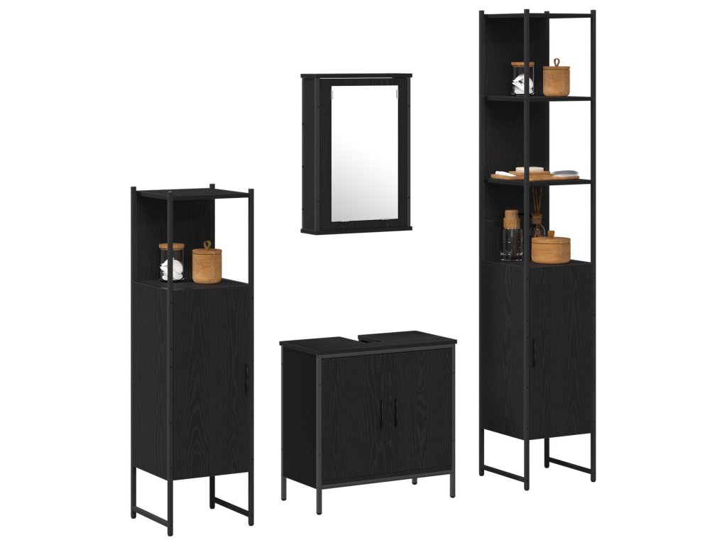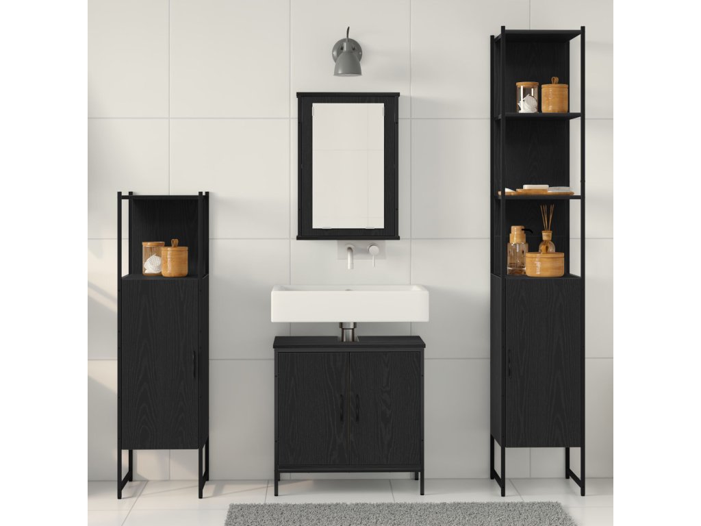 Sada koupelnového nábytku s policí 4 pcs Černá Kompozitní dřevo