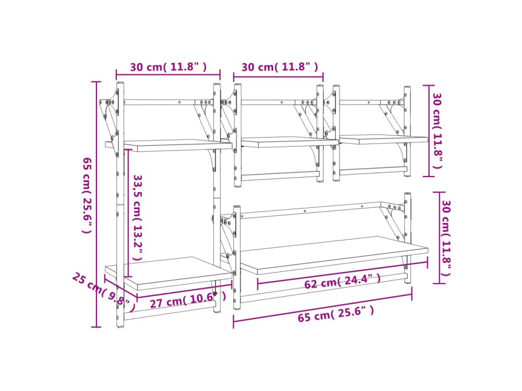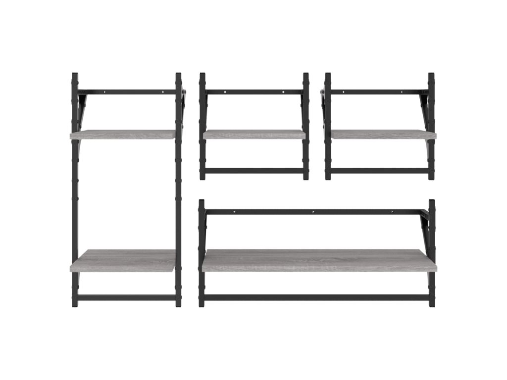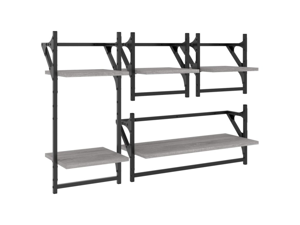 4dílná sada nástěnných polic s tyčemi šedá sonoma kompozit