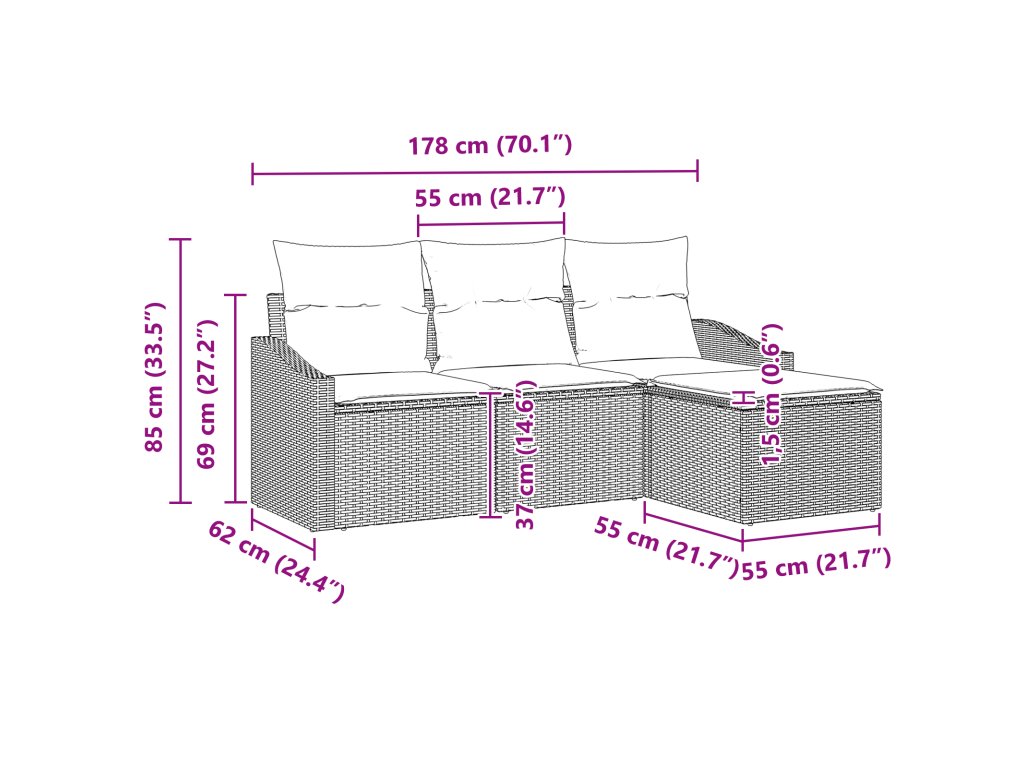 Set pohovek s polštářem 4 pcs Hnědá polyratan