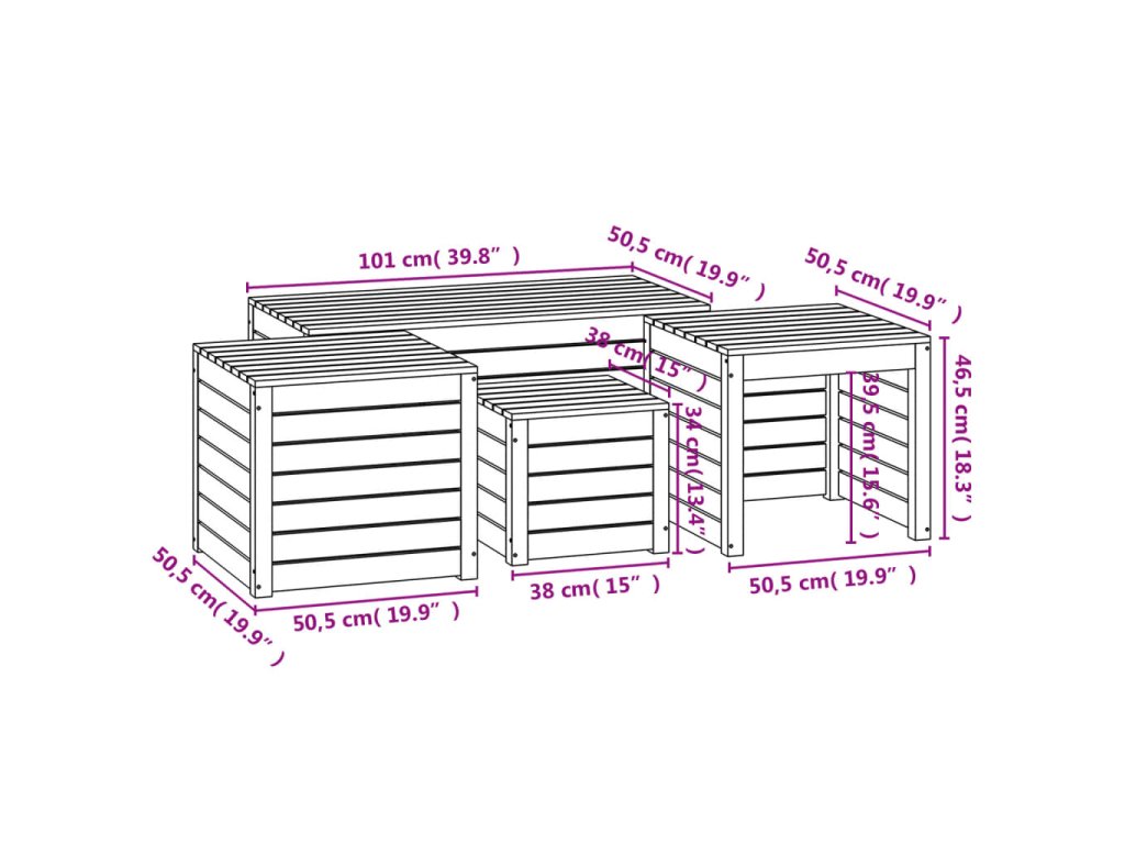 - Rozměry zahradního stolku s úložným prostorem: 50,5 x 50,5 x 46,5 cm (Š x H x V)