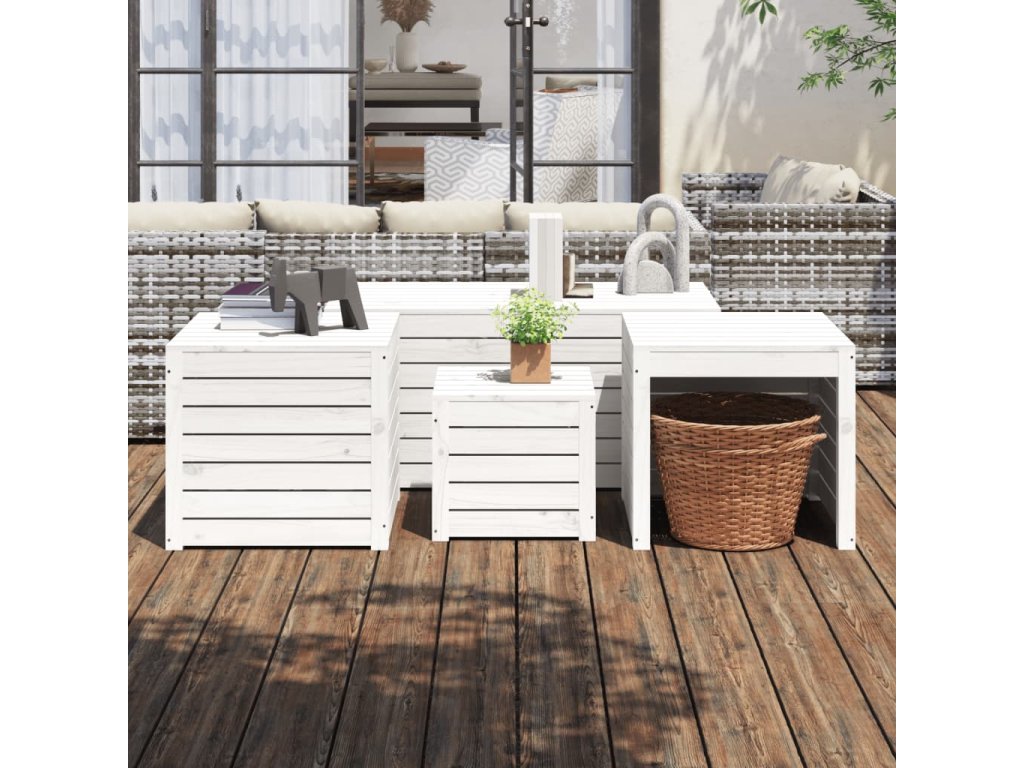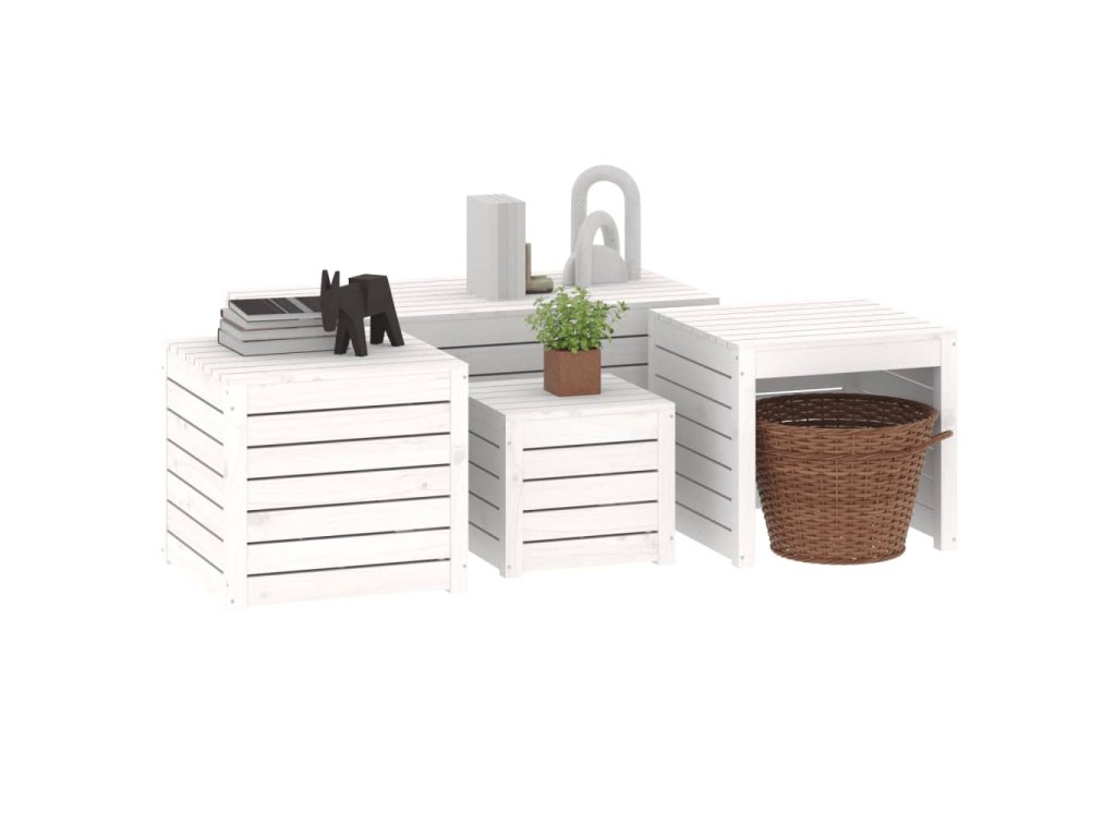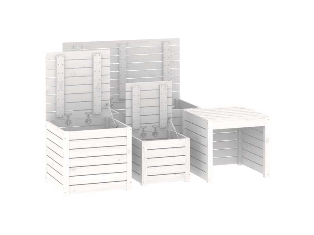 4dílná sada zahradních boxů bílá masivní borové dřevo