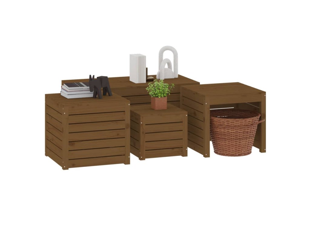 4dílná sada zahradních boxů medově hnědá masivní borové dřevo