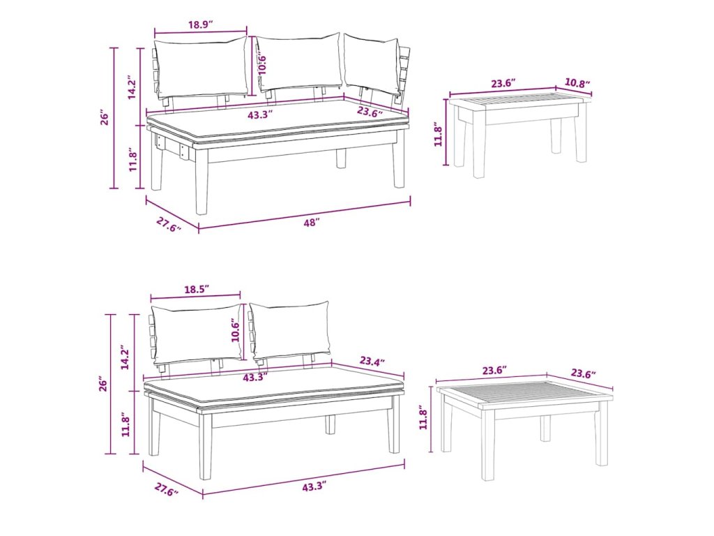 - Materiály: Tato sada spojuje krásný masivní teak na rámu a zádech s praktickými polyesterovými polštáři, což ji dělá atraktivní a funkční. Bohatá textura dřeva dodává každému venkovnímu prostoru elegantní nádech, zatímco polyester je odolný vůči různým povětrnostním podmínkám.