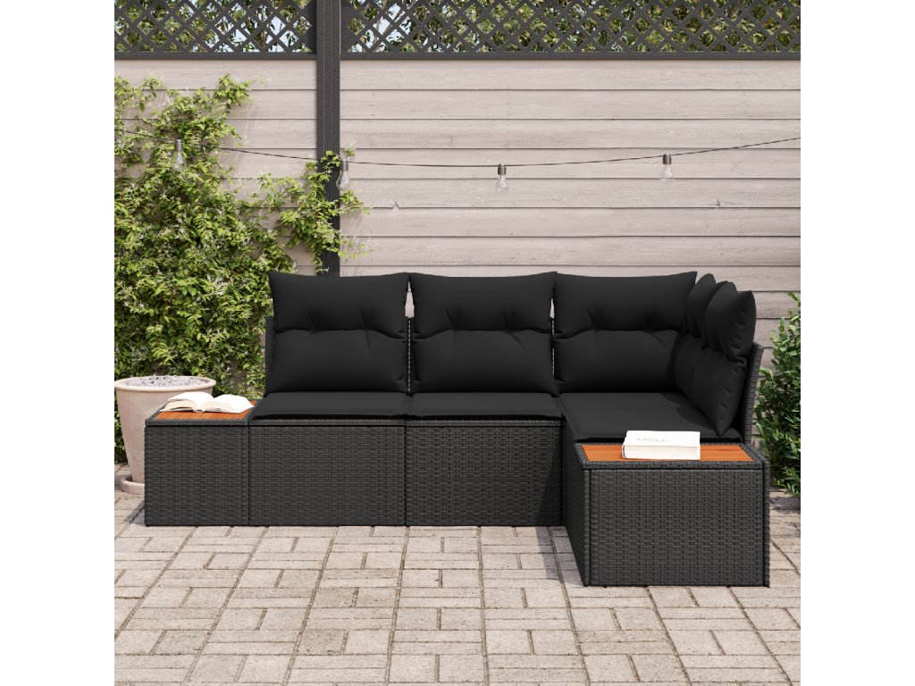 Sada zahradních pohovek s polštářem 5 pcs Černá polyratan