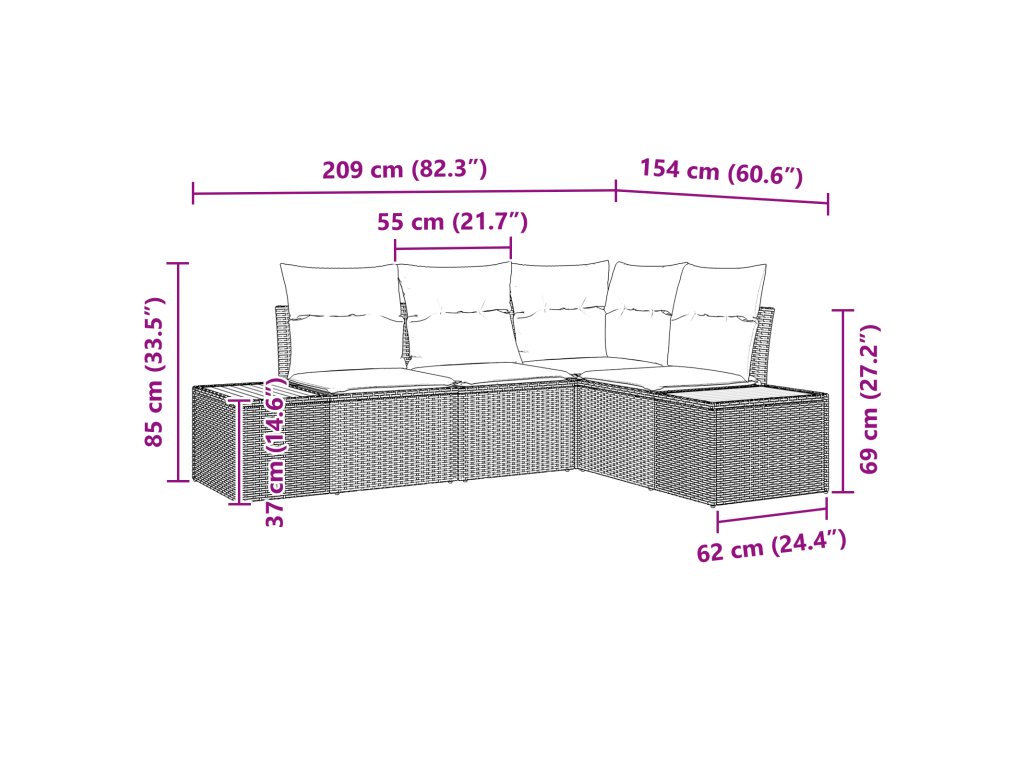 Materiály: Vyrobený z kvalitního poly ratanu, tento pohovkový set má moderní vzhled a lehký rám, který je ideální do exteriéru. Jeho robustní konstrukce obsahuje práškově lakovanou ocel pro skvělou odolnost, v kombinaci s hladkým akáciovým dřevem poskytuje pohodlí a styl. Součásti: Obsahuje hotovou/zastoupenou zadní část, která dodatkově ukotvuje konstrukci. Odnímatelné polstry s uzamčenými zipy jsou pohodlné a snadno se udržují. Dík polyesterovému plnění, polštáře zajistí maximální pohodlí pro venkovní lenošení. Vlastnosti / funkce / design: Modulární design ti umožní kreativitu, abys mohl vybírat z různých konfigurací podle svých potřeb. Výškově nastavitelný stůl zajišťuje, že si můžeš užít od kávového posezení až po formální stolování, ideální pro různé venkovní situace. Doporučené použití: Díky UV-odolnému materiálu, tenhle set zvládne sluneční paprsky a zachová si svůj vzhled v zahradách a na terasách. Odolná konstrukce posiluje celkový zážitek, který podporuje relaxaci, zatímco vytváříš společné chvíle ve svém venkovním útočišti. Údržba: Aby byl set v top stavu, doporučuje se používat kryt, když není v používání. Tato jednoduchá údržba pomáhá prodlužovat životnost a zaručí, že tvůj zahradní nábytek zůstane svěží a krásný při každém použití.- Barva: Černá