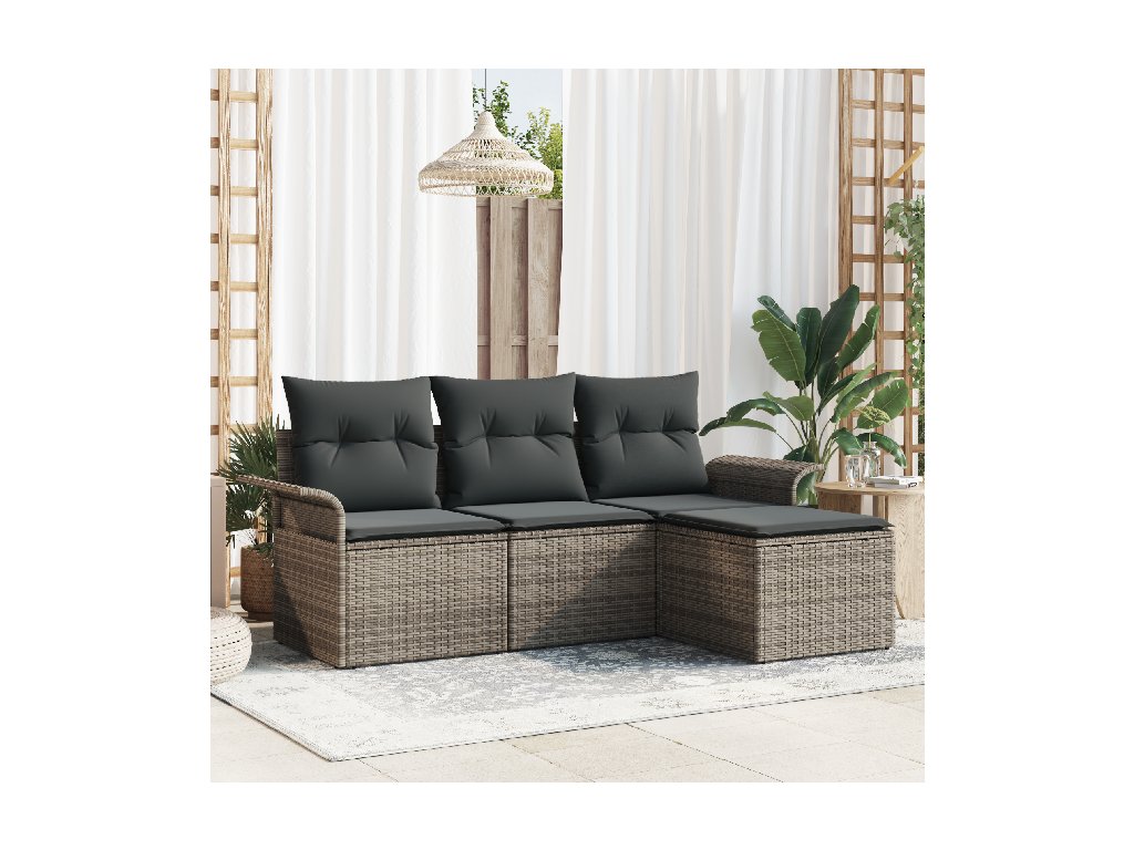 Sada zahradních pohovek s polštářem 4 pcs Šedá Poly ratan