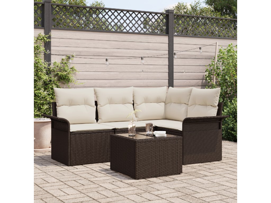 Sada zahradních pohovek s úložištěm 5 pcs Hnědá polyratan