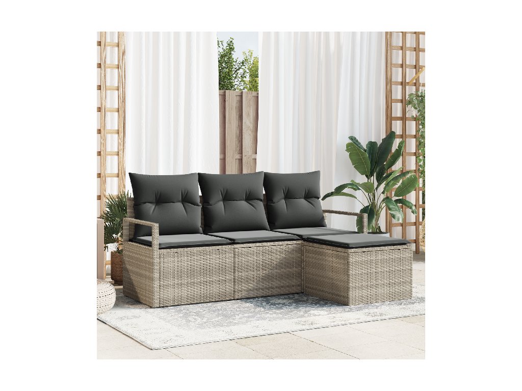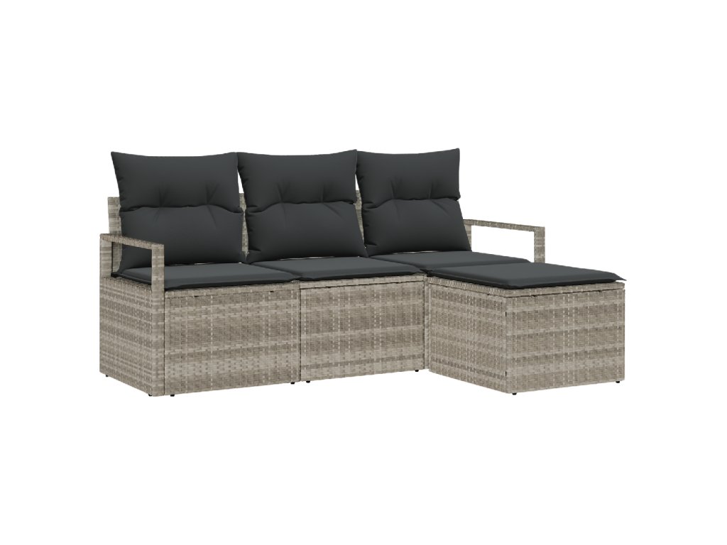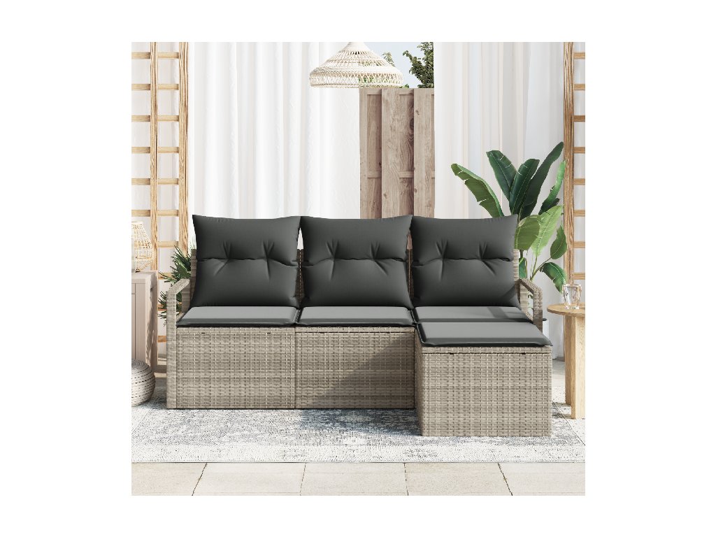 Materiály: Konstrukce z poly ratanu je robustní a odolná vůči nepříznivým podmínkám, včetně UV záření. Tkaný materiál dodává eleganci a je ideální pro použití venku během jara a léta. Součásti: Zahradní pohovka se skládá ze středního sedáku, dvou bočních pohovek a podnožky. Polštáře plněné pěnou zajišťují pohodlí, oporu má na robustním rámu z práškově lakované oceli. Zipy umožňují snadné sejmutí a údržbu polštářů. Dokončená zadní část a ploché opěrky rukou zajišťují dokonalý vzhled ze všech stran. Funkce / design: Modulární uspořádání lze přizpůsobit různým prostorům, aniž by se obětoval komfort nebo estetika. Ideální pro ty, kteří mají rádi flexibilní a stylový venkovní nábytek. Doporučené použití: Perfektní na zahrady, terasy a venkovní prostory. Vytváří příjemné místo pro setkání i klidné chvíle odpočinku. Ať už hostíte nebo si užíváte osamělost, s těmito kusy se do každého venkovního prostředí dodá šmrnc. Údržba: Zakryjte pohovku, když ji nepoužíváte, aby se chránila před nepřízní počasí a zůstala v bezvadném stavu. Pravidelně ji čistěte suchým hadrem, abyste udrželi její luxusní vzhled.- Barva: Světle šedá