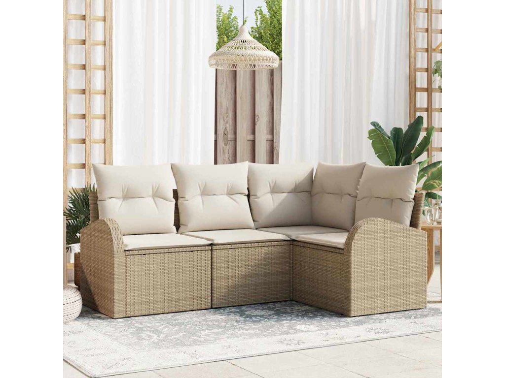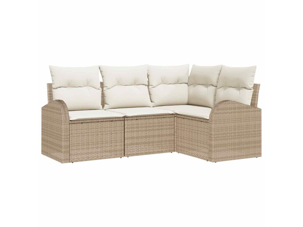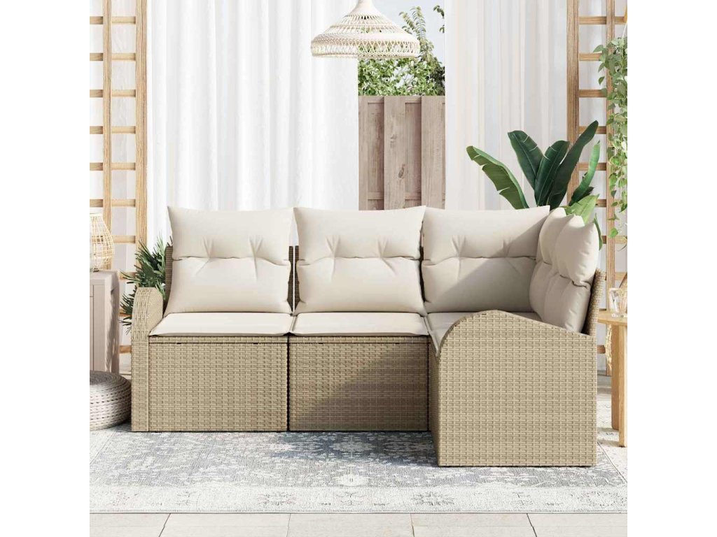 Set pohovek s polštářem s úložištěm 4 pcs Béžovo-bílá polyratan