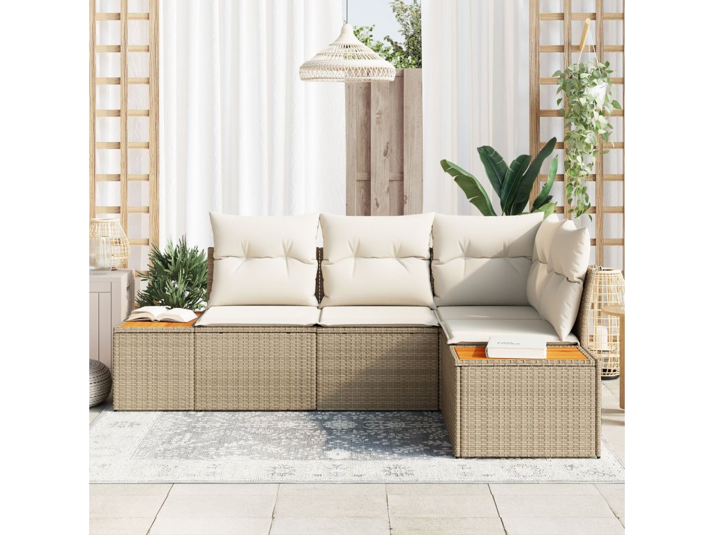 Sada zahradních pohovek s polštářem 5 pcs Béžová polyratan