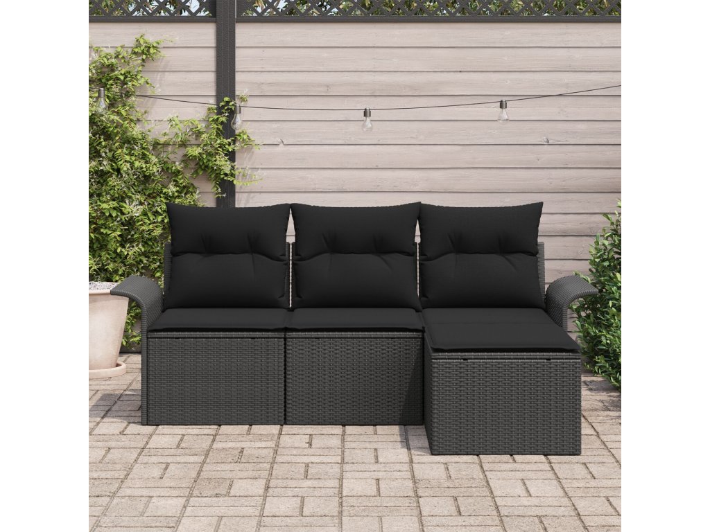 Set pohovek s polštářem 4 pcs Černá polyratan