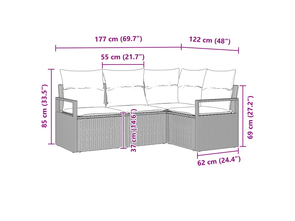 Výstavba z polyratanu Odolná a stylová konstrukce, která se nabízí dlouhou životnost a zvládá i běsnění počasí. Tento materiál se ukázal jako top volba pro zahradní nábytek díky svému elegantnímu vzhledu a praktičnosti. Pohodlné polštáře V balení jsou husté polyesterové polštáře se zipem, takže je můžete snadno sundat a vyprat. Tato vychytávka zaručuje pohodlí a příjemné lenošení na čerstvém vzduchu. Modulární design Souprava se dá nastavit na různé způsoby, takže ji podle potřeby upravíte na své akce. Je tak flexibilní, že se hodí na každou příležitost nebo do jakéhokoli prostředí. Manuální úpravy Díky manuálnímu mechanismu si můžete upravit soupravu podle svých představ, aniž byste potřebovali složité nástroje, takže to bude snadné. Doporučení pro ochranný obal Aby vám souprava dlouho vydržela, doporučujeme zakrývat ji, když ji zrovna nepoužíváte. Tak materíál nebude vystavený těžkým podmínkám a udrží si svou krásu a funkčnost.- Barva: Hnědá