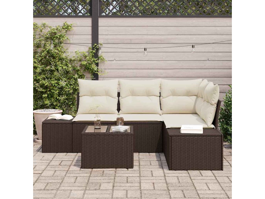 Sada zahradních pohovek s polštářem 5 pcs Hnědá a krémová