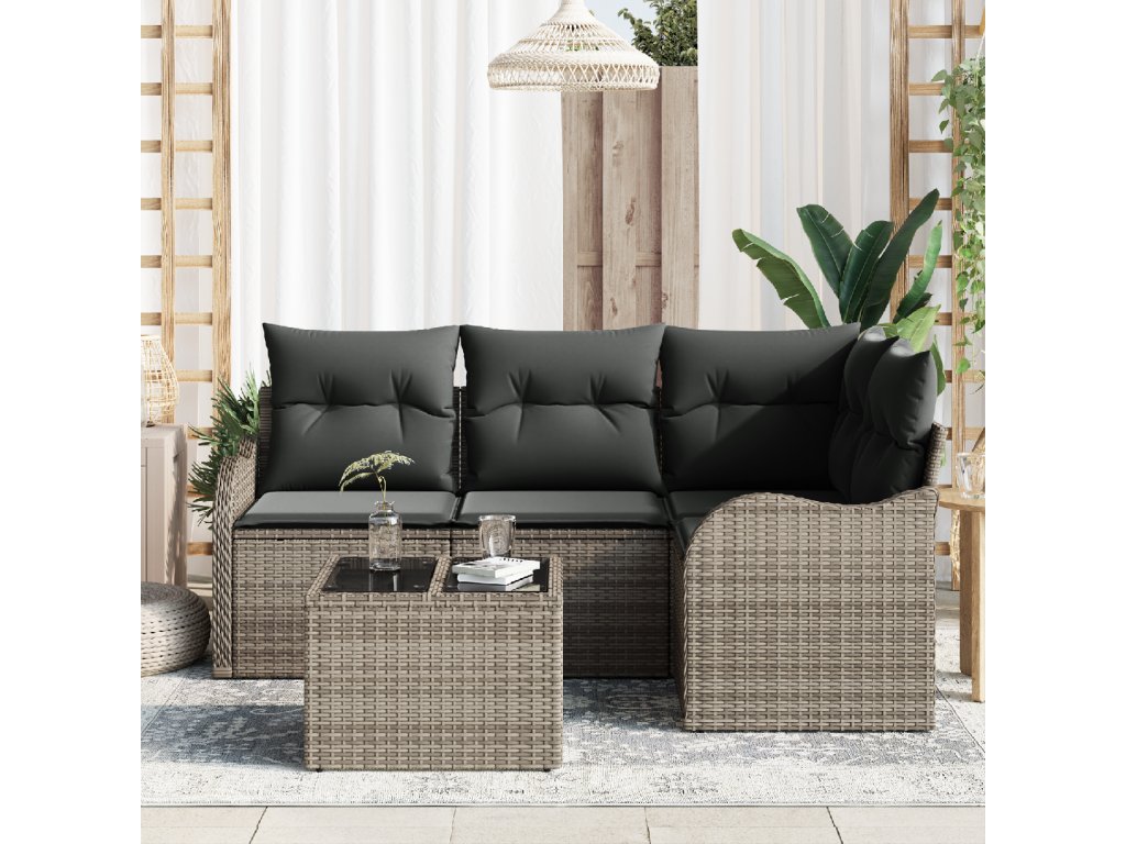 Odolné materiály: Konstrukce z kvalitního polyratanu a práškově lakované oceli zaručuje odolnost a dlouhou životnost. Materiály byly vybrány tak, aby zvládly venkovní podmínky a dlouho vypadaly dobře. Zakřivené opěrky rukou: Tento gauč má opěrky rukou vyrobené z polyratanu, které jsou pohodlné a stylové. Ergonomický design zajišťuje pohodlné sezení i dlouho na slunci. Modulární design: Flexibilita této soupravy ti umožňuje přizpůsobit uspořádání podle prostorových a estetických požadavků. Každý kus se snadno přeskupuje nebo rozšiřuje podle potřeby. Pohodlné prvky: S polyesterovými polštáři ti souprava nabízí měkké a pohodlné sezení. Polštáře mají odnímatelné a pratelné potahy, což usnadňuje údržbu. Praktická údržba: Souprava nevyžaduje moc péče; stačí ji otřít vlhkým hadříkem, aby zůstala v dobrém stavu. Používej venkovní kryt, když nábytek nepoužíváš, abys prodloužil jeho životnost.- Barva: Šedá