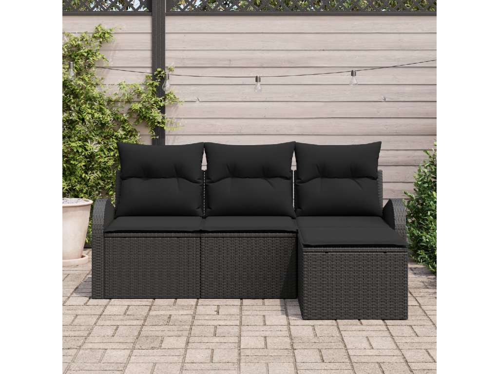 Set pohovek s polštářem s úložištěm 4 pcs Černá polyratan