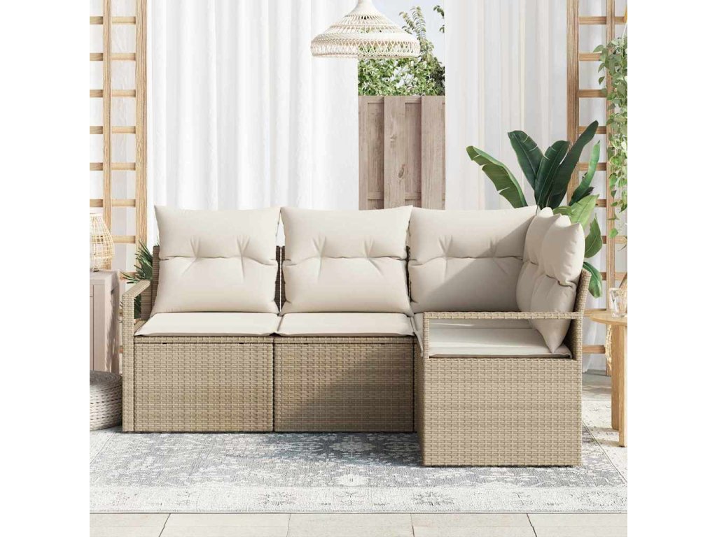 Sada zahradních pohovek s polštářem 4 pcs Béžová a krémová
