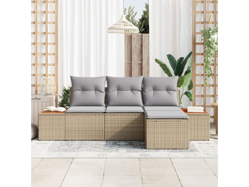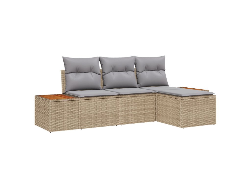 Sada zahradních pohovek s polštářem 4 pcs Béžová polyratan