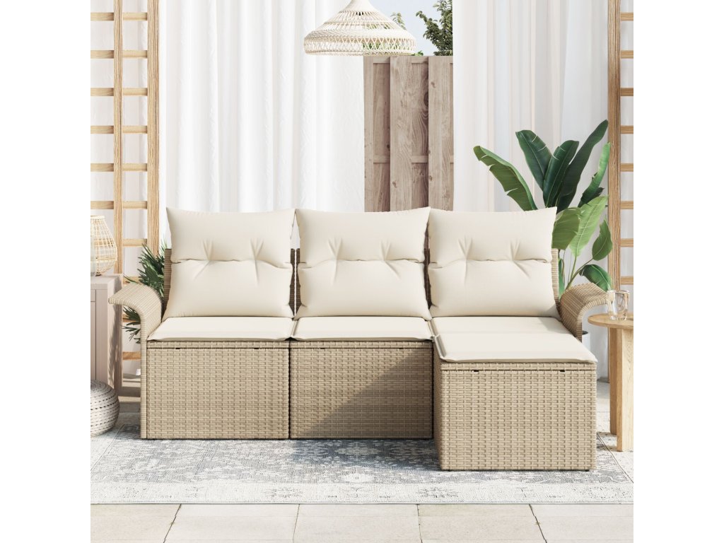 Set pohovek s polštářem 4 pcs Béžová polyratan