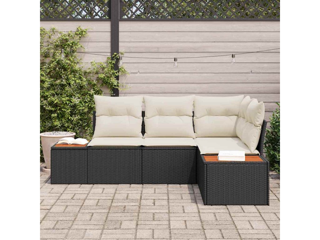 Sada zahradních pohovek 4 pcs Černá a krémová Poly ratan