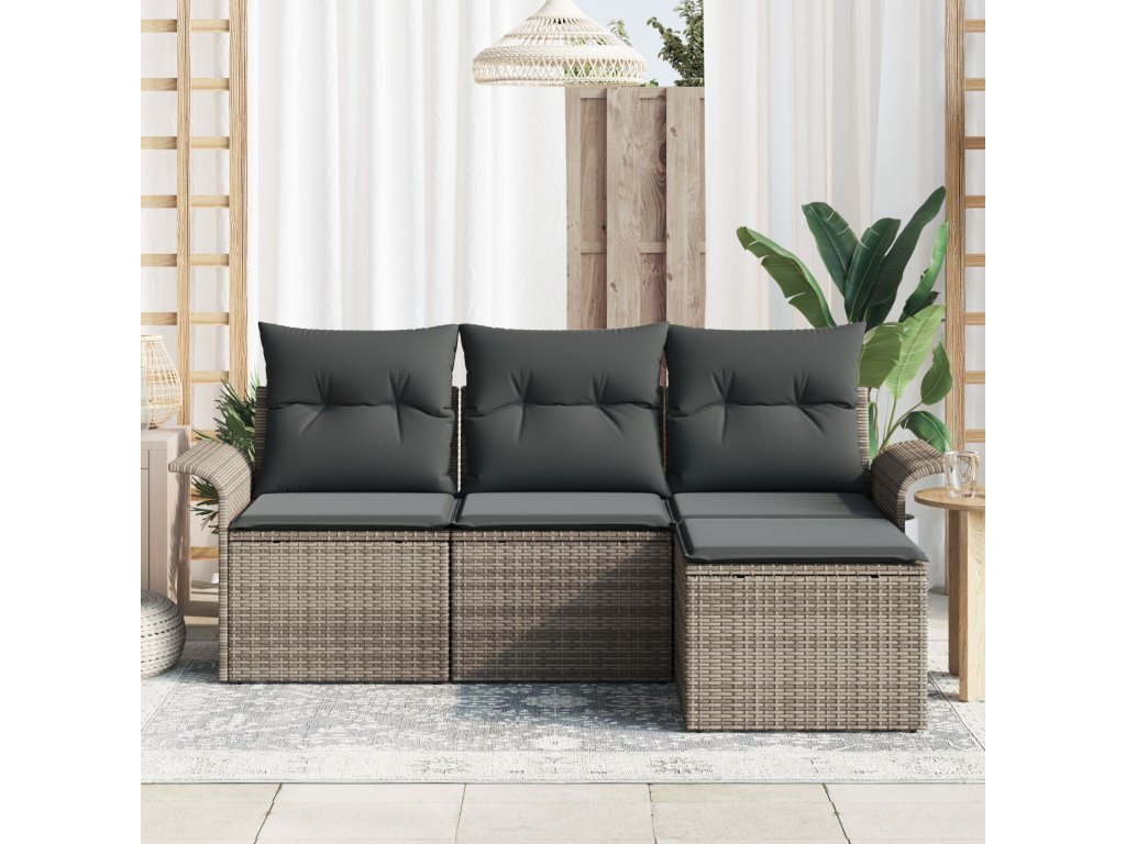 Set pohovek s polštářem 4 pcs Šedá polyratan