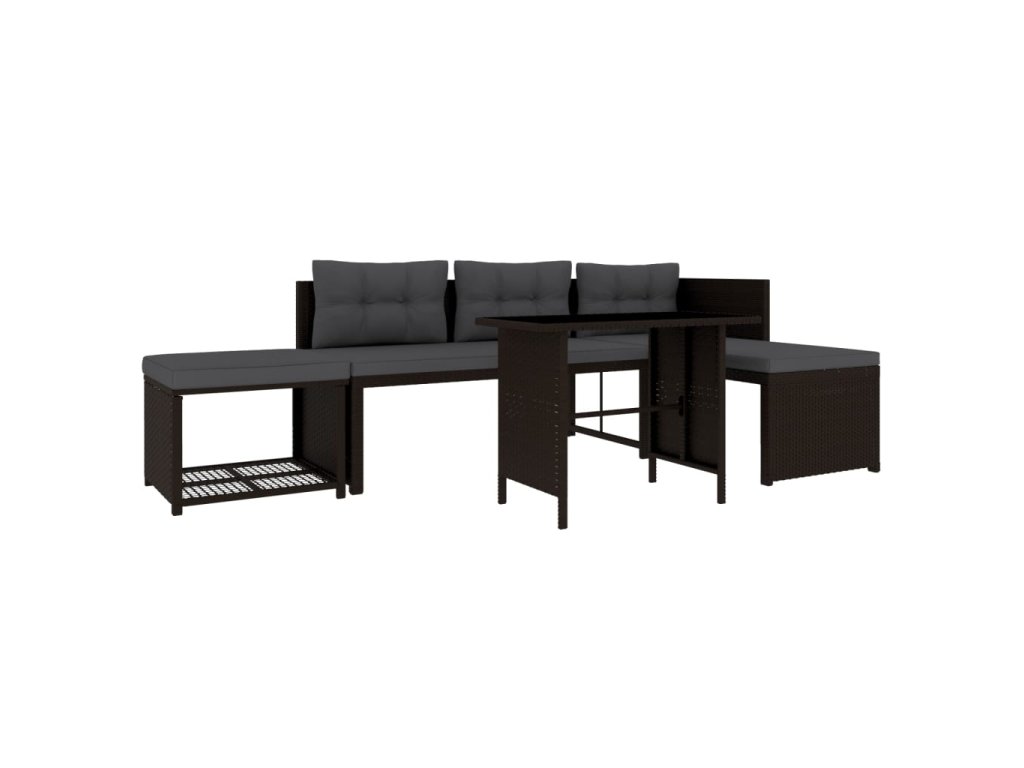 Sedací souprava je vyrobená z voděodolného polyratanu, který se snadno čistí a hodně toho vydrží. Rám z oceli s práškovým nástřikem jí pak propůjčuje pevnost a stabilitu. Součástí balení jsou také vysoce pohodlné, silně polstrované podsedáky a zádové polštáře, aby se vám dobře a pohodlně sedělo. Jejich potahy jsou ušité z polyesteru, který je nenáročný na údržbu. Lze je navíc i sejmout a vyprat. Balení obsahuje 1 stůl, taburet, 1 dvousedačku, 1 lehátko, 3 podsedáky a 3 polštáře za záda.
