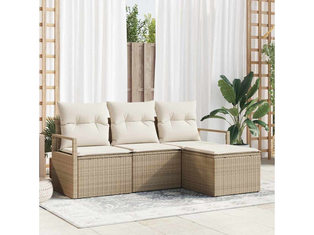 Sada zahradních pohovek s polštářem 4 pcs Béžová a krémová