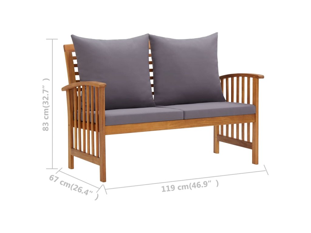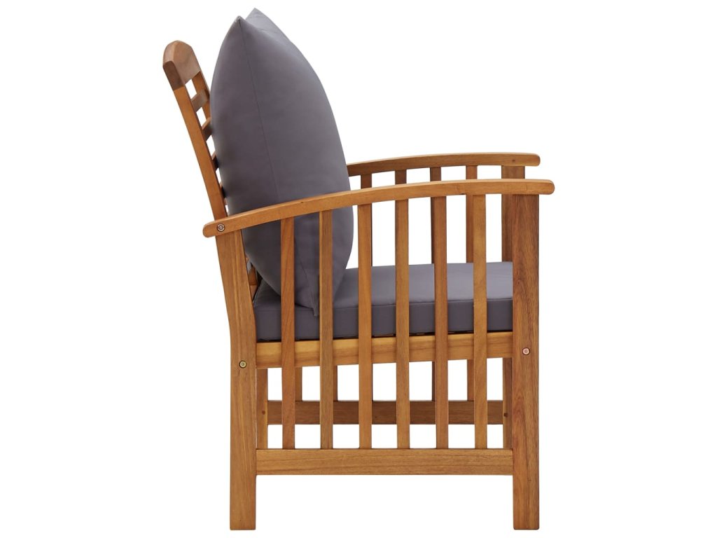 Set zahradního nábytku je zhotovený z masivního akáciového dřeva s olejovou úpravou, je stabilní a má dlouhou životnost. Tlusté podušky na sedák a opěradlo poskytují měkké posezení. Konferenční stolek s masivní dřevěnou stolní deskou s lamelovým designem poslouží jako perfektní odkládací plocha pro vaše občerstvení, mísy s ovocem, dekorativní předměty a další nezbytnosti. Na lavičce a židlích s lehce zaobleným opěradlem a loketními opěrkami se velmi pohodlně sedí.