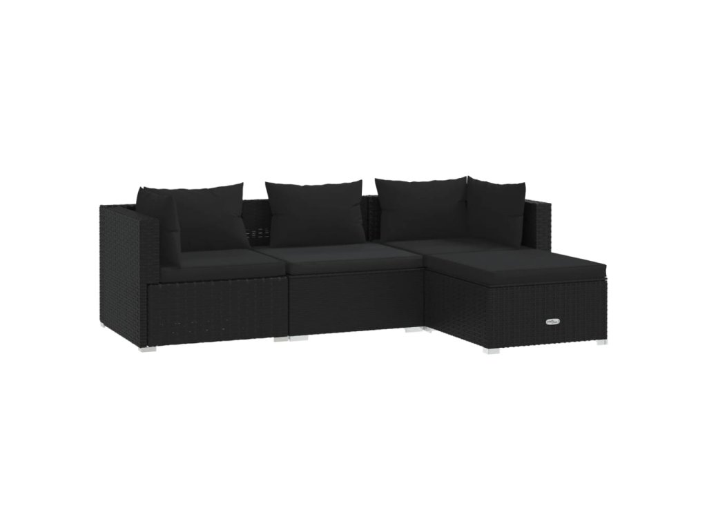 4dílná zahradní sedací souprava s poduškami polyratan černá
