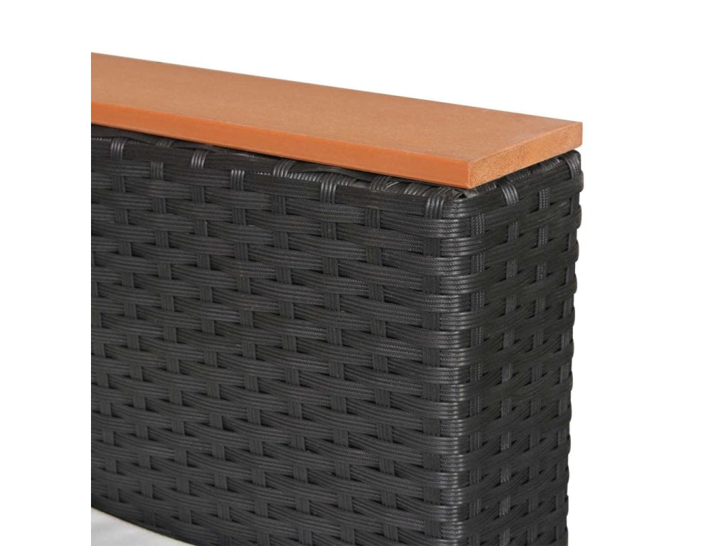 - Materiál: ocelové rámy s práškovým nástřikem + stolní deska a područky z WPC + PE ratan