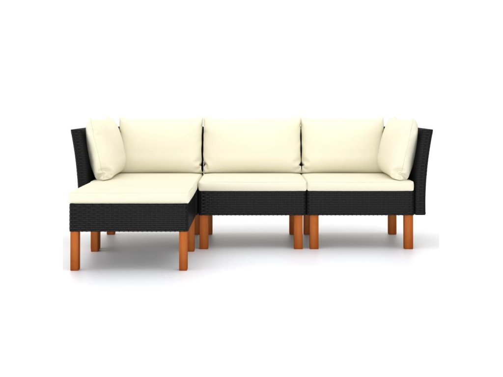 4dílná zahradní sedací souprava s poduškami polyratan černá