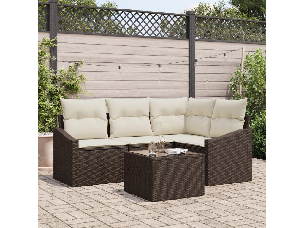 Set pohovek s polštářem 5 pcs Hnědá polyratan