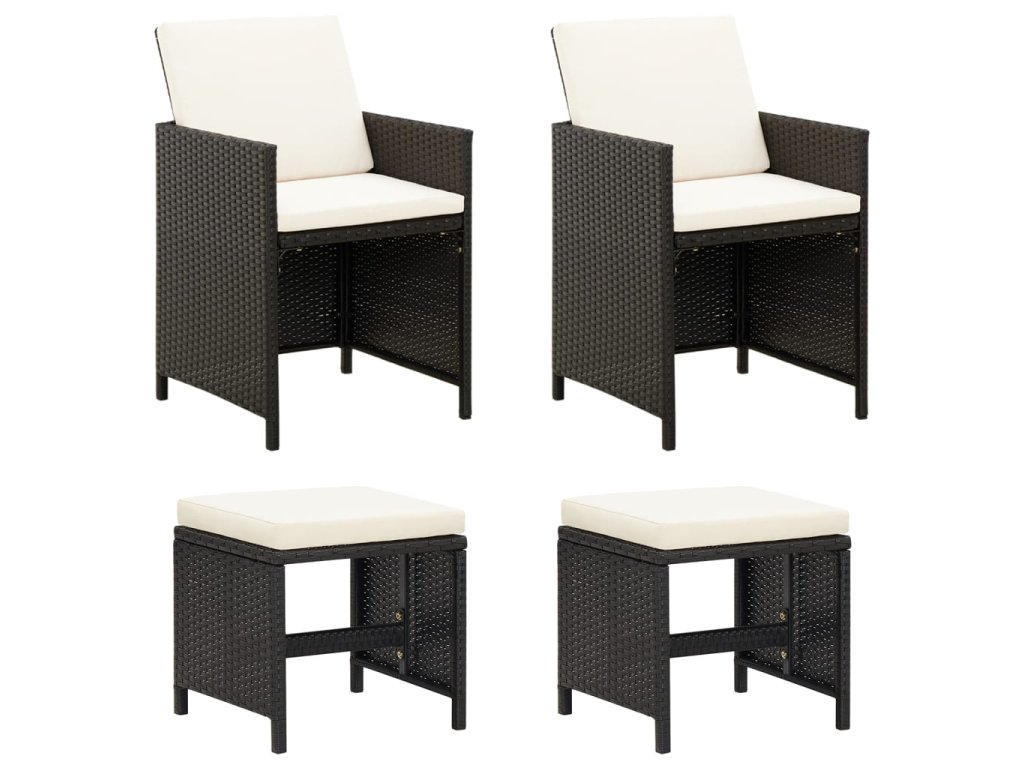 4dílná zahradní souprava křesel a podnožek polyratan černá