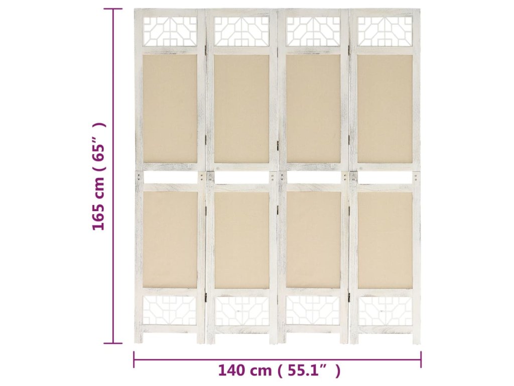 4dílný paraván krémový 140 x 165 cm textil