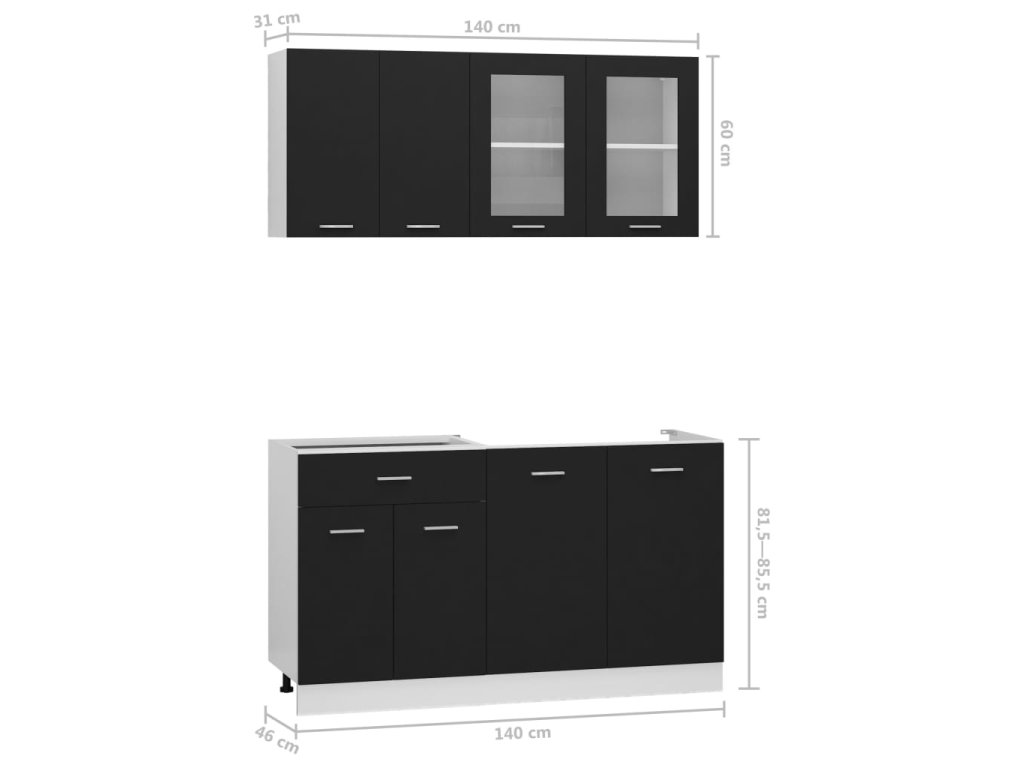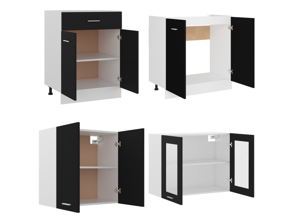 4dílná sada kuchyňských skříněk "Lyon" černá, z umělého dřeva