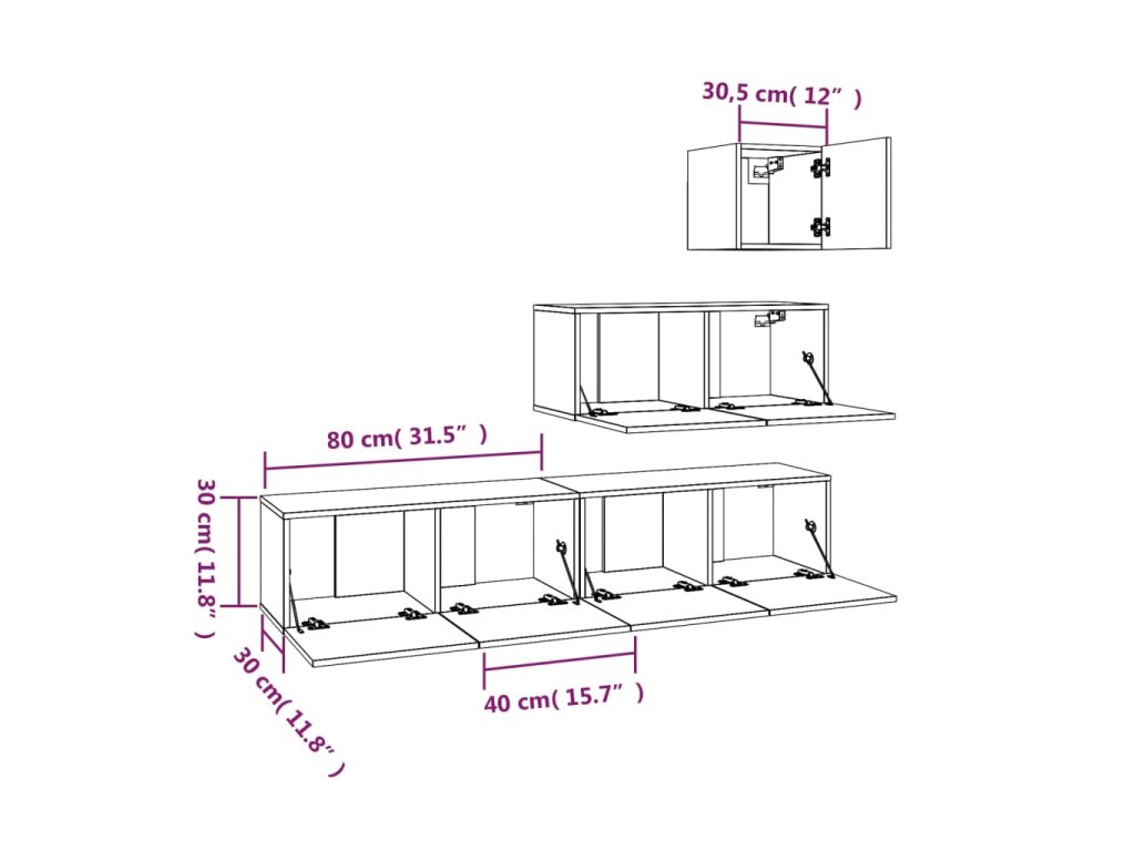 - Rozměry dolní TV skříňky (každý kus): 80 x 30 x 30 cm (Š x H x V)
