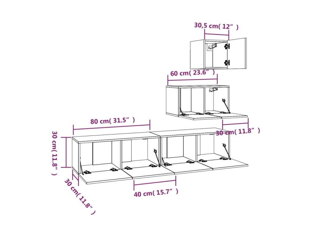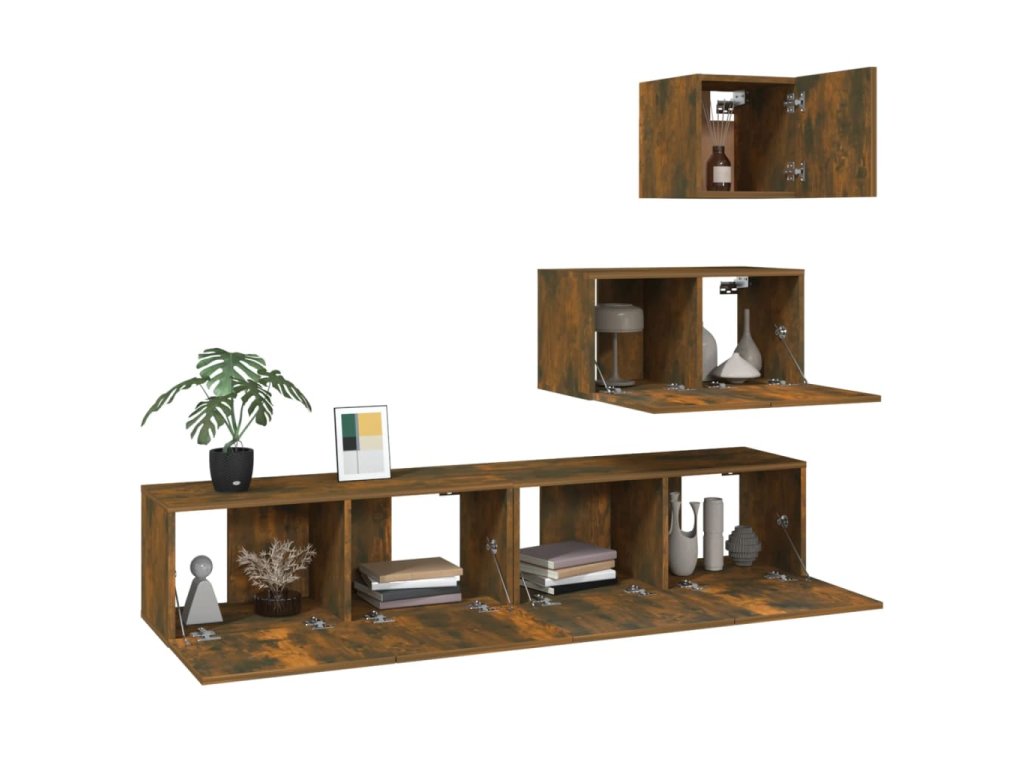 4dílný set TV skříněk kouřový dub kompozitní dřevo