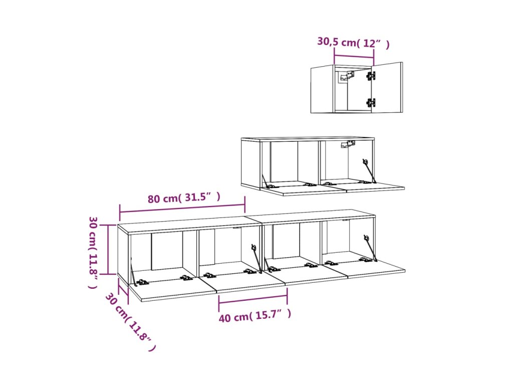 4dílný set TV skříněk šedý sonoma kompozitní dřevo