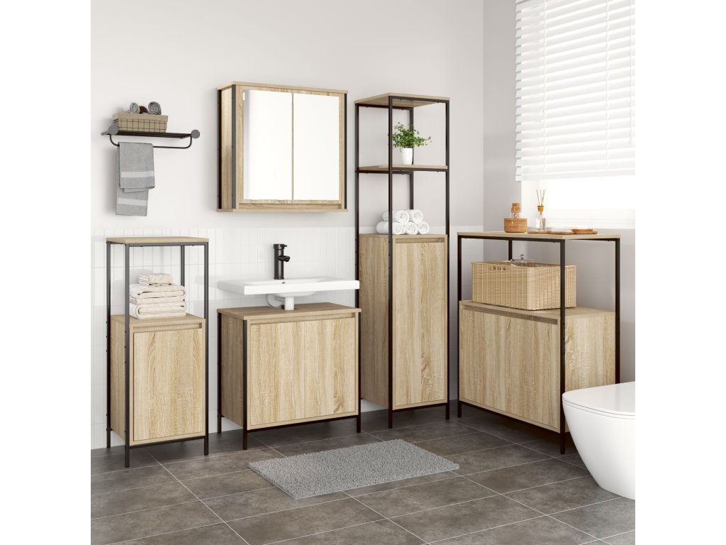 Sada koupelnového nábytku s policí 5 pcs Sonoma dub a černá