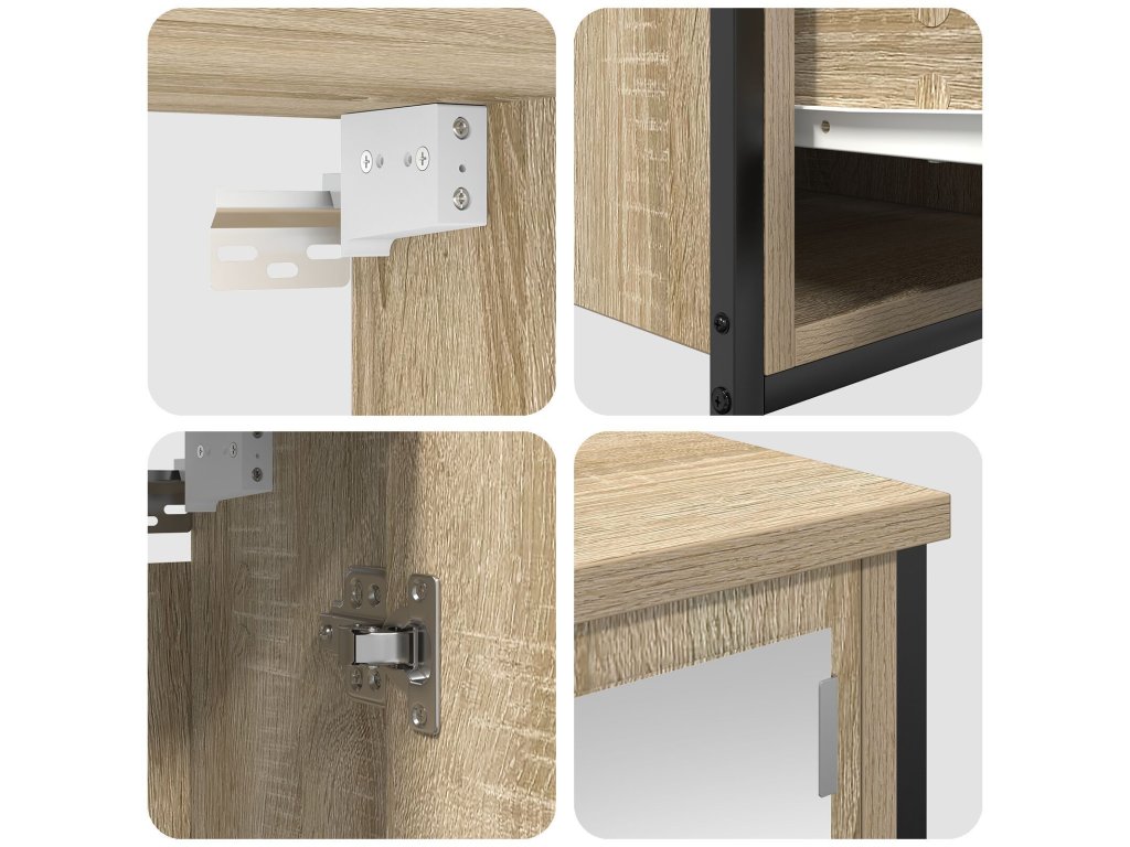 - Bytelná konstrukce: Tato skříňka, vyrobená z inženýrského dřeva s kovovými prvky, zvládá každodenní používání a zároveň skvěle vypadá. Je navržená tak, aby unesla až 60 kg, takže je spolehlivá volba.