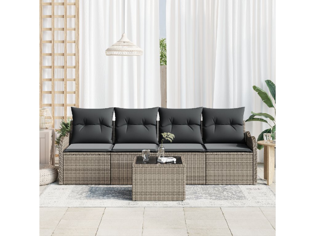 Sada zahradních pohovek 5 pcs Šedá Polyratan a ocel a sklo