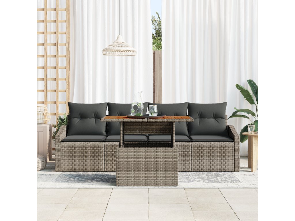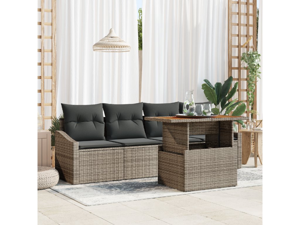 Sada zahradních pohovek s polštářem 5 pcs Šedá Poly ratan