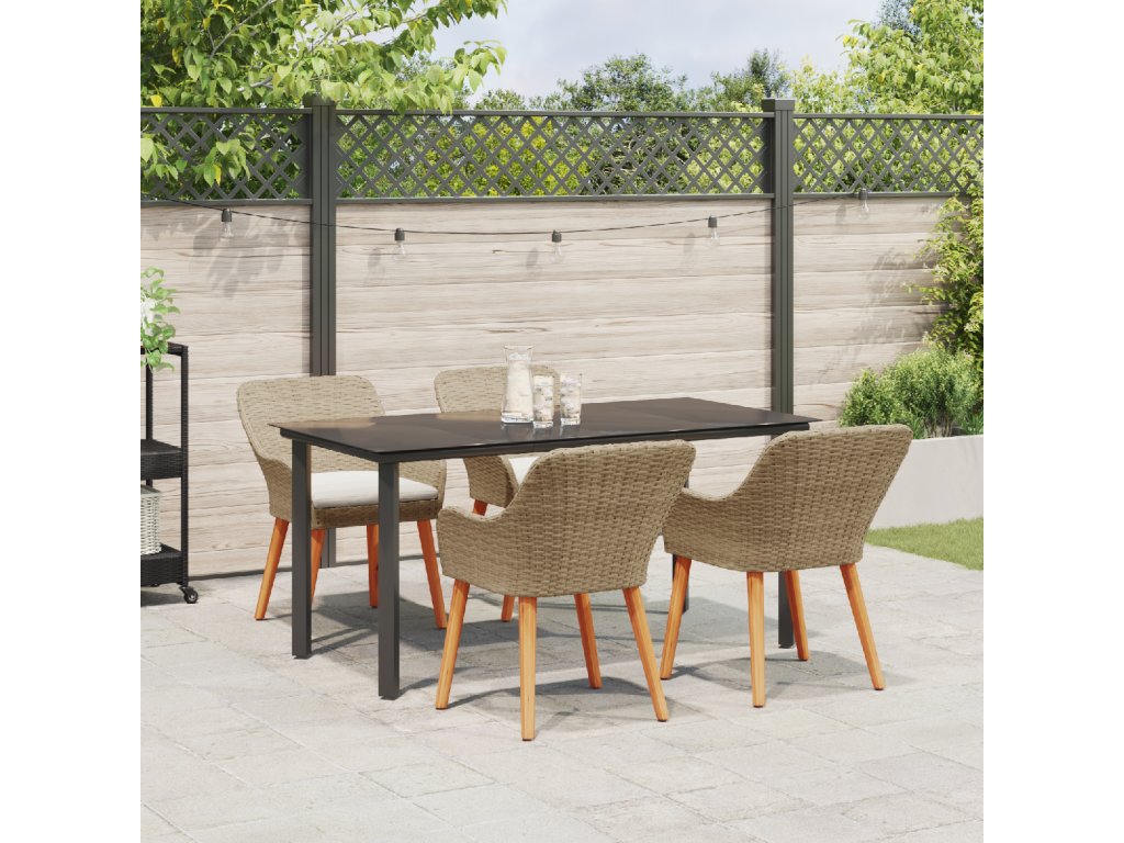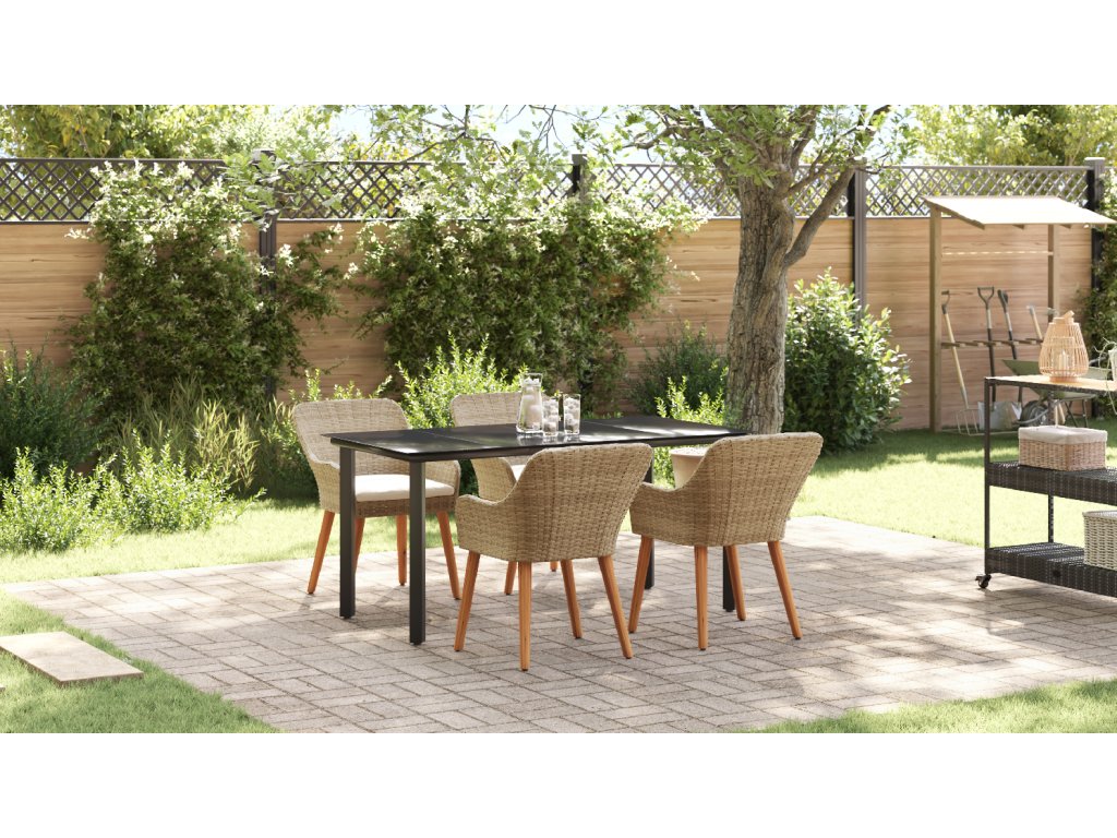 Odolné materiály: Díky kvalitnímu poly ratan a silný oceli, tato sada vydrží všechno, suitable for co počasí přinese po celý rok. Je navržená tak, aby odolávala dešti, UV paprskům a opotřebení, takže ji můžeš bez obav používat na venkovní akce. Můžeš se na ní spolehnout, že bude stabilní a bude vypadat skvěle i po mnoha posezení. UV-odolná kvalita: Tato sada má UV-odolné materiály, které ji udržují stále pěknou a silnou, brání vyblednutí na slunci. Takže vždycky bude vypadat skvěle a váš venkovní prostor zůstane čerstvej bez ohledu na roční období. Elegantní design stolu: Mrkni na skvělej patio stůl s elegantním skleněným povrchem. Snadno se čistí a vypadá skvěle, spojuje styl s praktičností, takže venkovní stolování je radost. Pohodlné sezení: Tato jídelní sada obsahuje příjemný polštáře na sezení, které mají praktické zipy, což dělá dlouhá jídla venku bezproblémový. Poly ratanový židle ne jenom dobře vypadají, ale taky jsou pohodlný, ideální na lenošení v letních dnech. Údržba a péče: Aby vaše sada zůstala v top stavu, používejte kryty, když není v provozu. To ji chrání před nepříznivým počasím a pomáhá jí dlouho vydržet. Navíc je snadná na údržbu, takže se můžeš soustředit na užívání si prostoru vaší zahrady.- Barva: Béžová