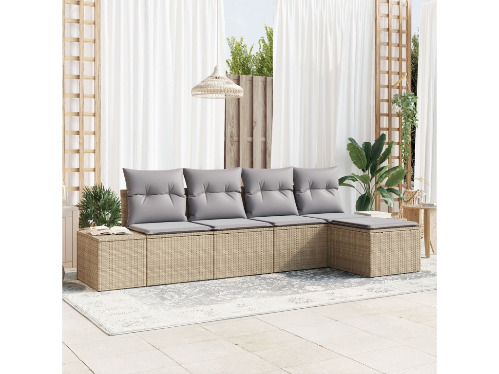 Sada zahradních pohovek s polštářem 5 pcs Béžová polyratan