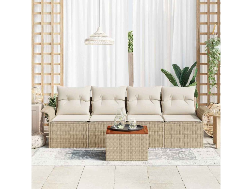Sada zahradních pohovek s polštářem 5 pcs Béžová a krémová