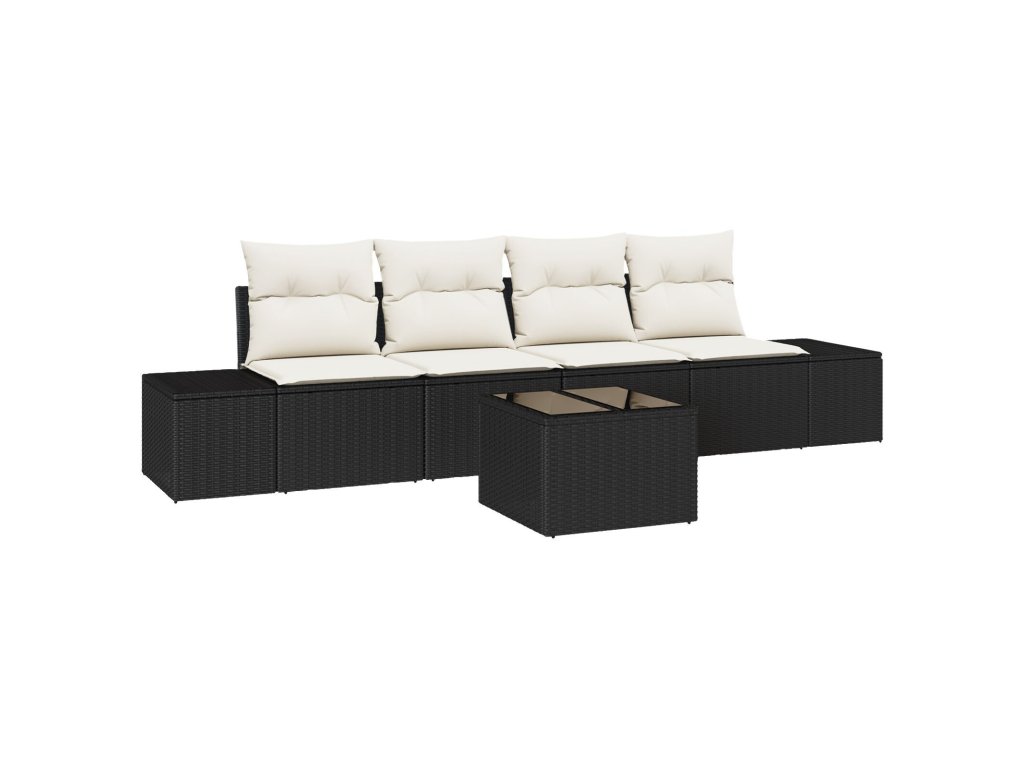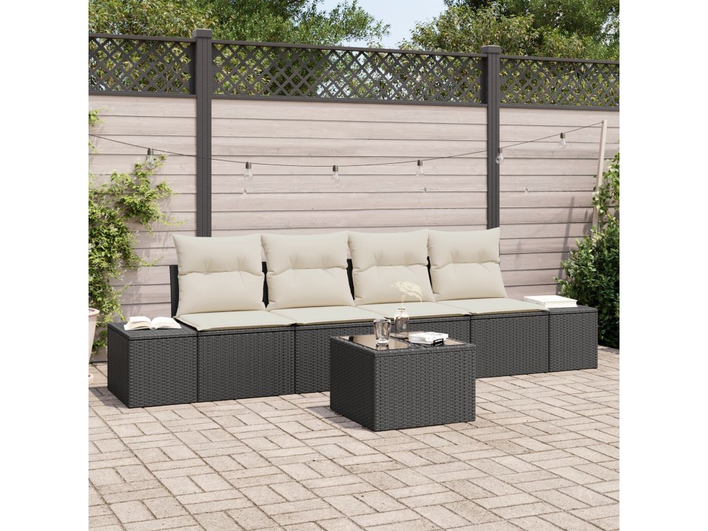 Set pohovek s polštářem 5 pcs Černá a krémová polyratan