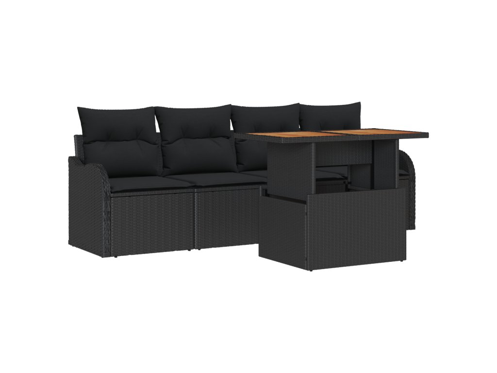 Prémiové materiály: Set kombinuje odolnost poly ratanu s krásným akáciovým dřevem, které odolává UV záření a dešti. Tato kombinace zajišťuje dlouhou životnost a nízkou údržbu. Kompletní komponenty: Každý díl je navržen pro pohodlí a funkčnost, s luxusními polstry a zakřivenými opěrkami pro maximální relaxaci. Funkční stůl: Výsuvný stůl se jednoduše promění z kávového na jídelní stůl, ideální pro různé aktivity. Flexibilní umístění: Skvěle se hodí do různých prostor, jeho modularita umožňuje snadné přizpůsobení podle vaší nálady. Snadná údržba: Stačí zakrýt set při špatném počasí, takže si dlouho uchová svůj svěží vzhled.- Barva: Černá