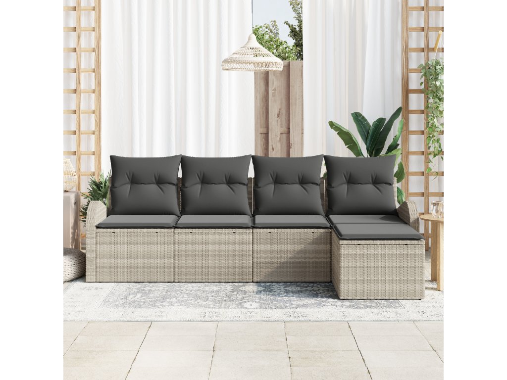 Set pohovek s polštářem s úložištěm 5 pcs Světle šedá polyratan