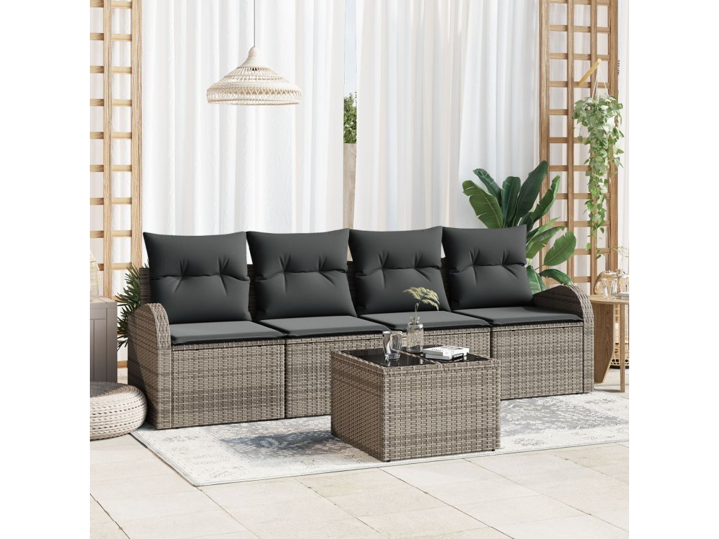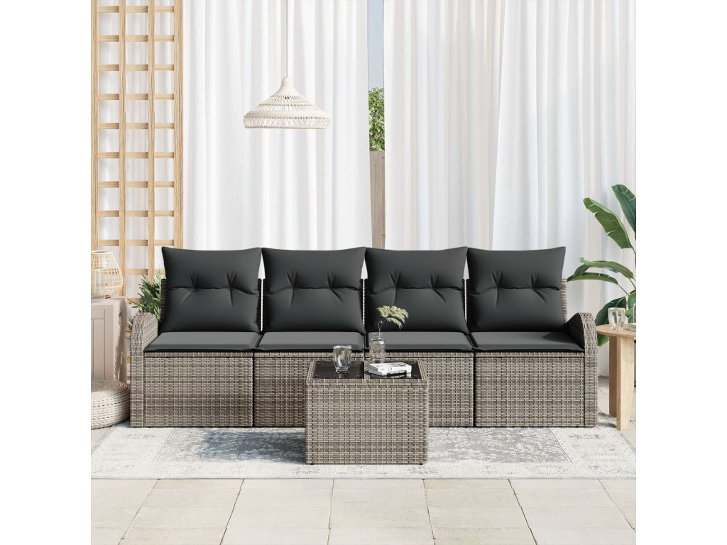 Odolné materiály Tento pohovkový set je vyrobený z kvalitního poly ratanu, který je odolný vůči povětrnostním vlivům, takže zůstane v pohodě za různých podmínek – ideální pro celoroční užití na terase nebo zahradě. Obsah setu S masivním ocelovým rámem a poly ratanovým zadem, set přichází s pohodlnými polstry s odnímatelnými a pratelnými potahy, což znamená snadnou údržbu a dlouhé pohodlí. Temperované skleněné stolky jsou silné a lehce se čistí. Jedinečné vlastnosti Tento pohovkový set vyniká lehkým designem, což usnadňuje přeuspořádání vaší terasy. UV ochrana zajišťuje, že si dlouho uchová svůj vzhled. Modulární struktura dává uživatelům možnost přizpůsobit jeho uspořádání podle potřeby. Univerzální použití Navržený pro léto, tento set se skvěle hodí na terasy a do zahrad, vytváří příjemnou atmosféru pro relaxaci a setkání. Jeho moderní styl ladí s různými prostředími, takže se hodí do rezidenčních i komerčních prostorů. Údržba Pro zachování vzhledu stačí po použití otřít vlhkým hadříkem a v dešti ho zakrýt, abyste prodloužili jeho životnost a estetiku.- Barva: Šedá