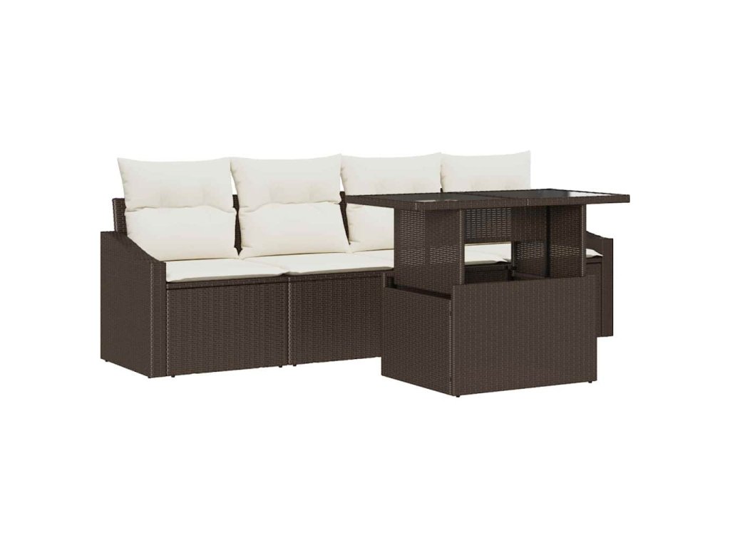 Sada zahradních pohovek s úložištěm 5 pcs Hnědá Poly ratan